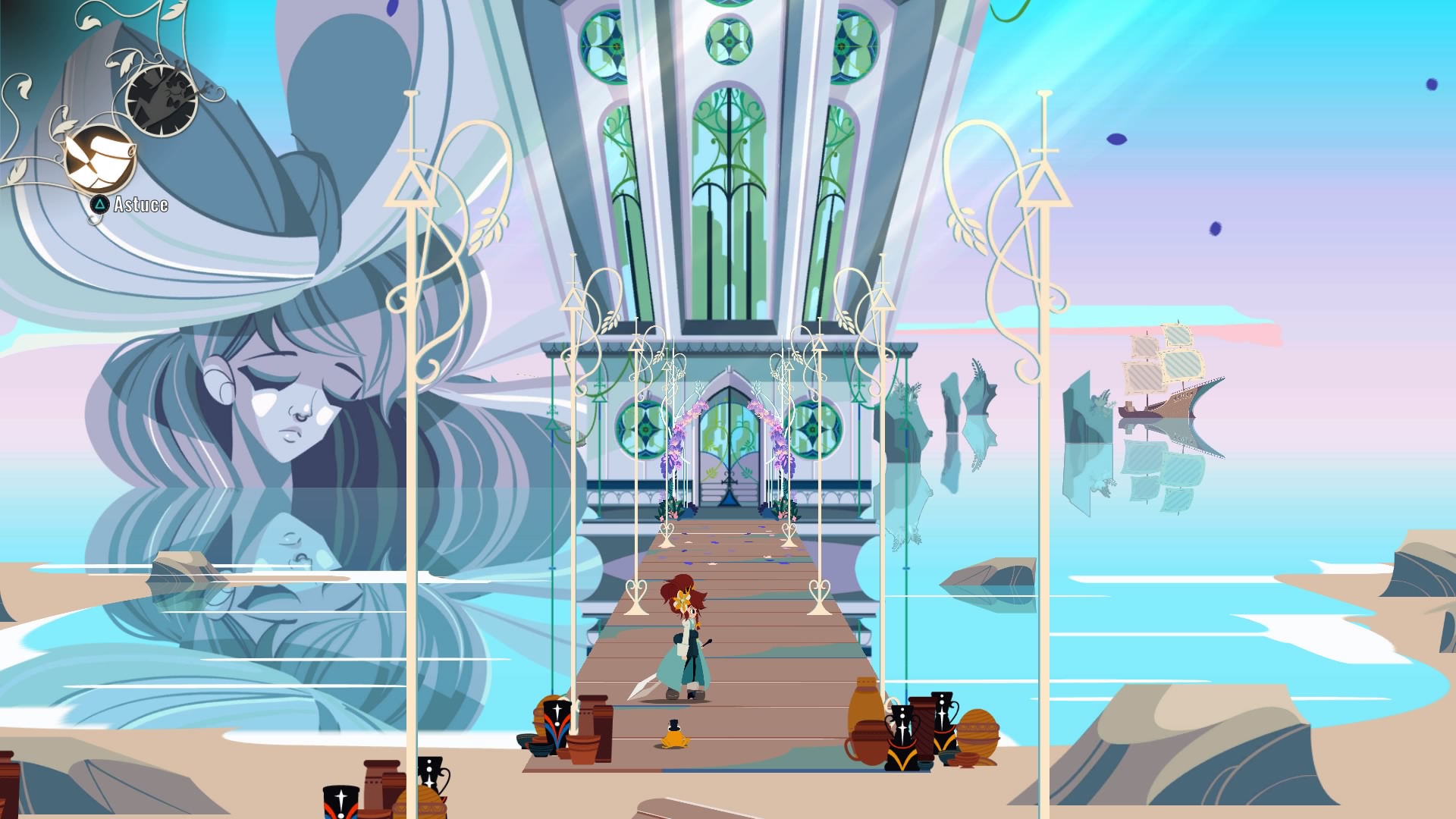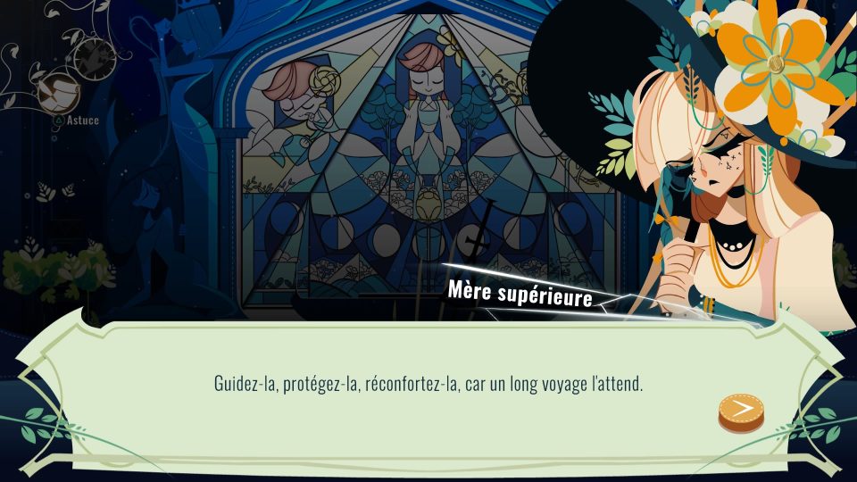 Bref, avec ces capacités exceptionnelles, vous devrez prendre des décisions pour aider les gens que vous rencontrerez. Vous entamerez un voyage épique à la recherche de votre passé, de votre maman et donc, de votre histoire. Une introspection au cœur des vitraux et des différentes cathédrales que vous visiterez ! Accompagnés de vos compagnons Wilhelm et Christopher. Mais votre premier ami dans le jeu, et ce sera votre première quête, c’est de retrouver Matias, une grenouille affublée d’un haut-de-forme ! C’est d’ailleurs lui qui croira en vous et vos capacités dès le début du jeu ! A l’aventure, compagnons !